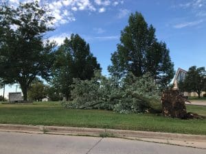 The high winds knocked off tree limbs and also uprooted entire trees, causing damages to local parks, businesses and residences.